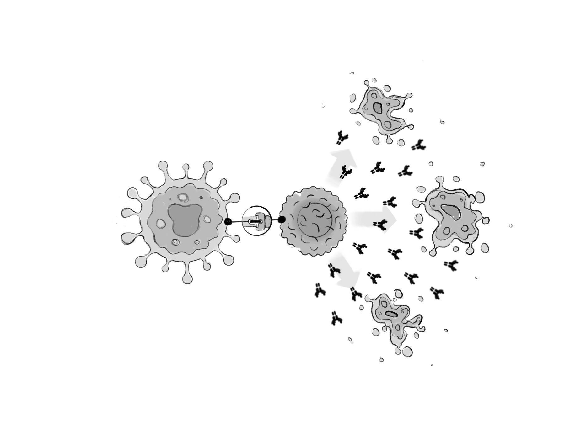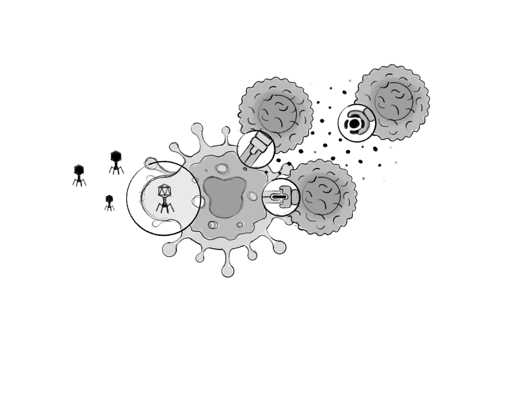 Sensei Bio develops immunotherapies that harness the body's defences against cancer. I designed a set of illustrations and diagrams to help them communicate their research: from molecular mechanisms to cellular interactions.